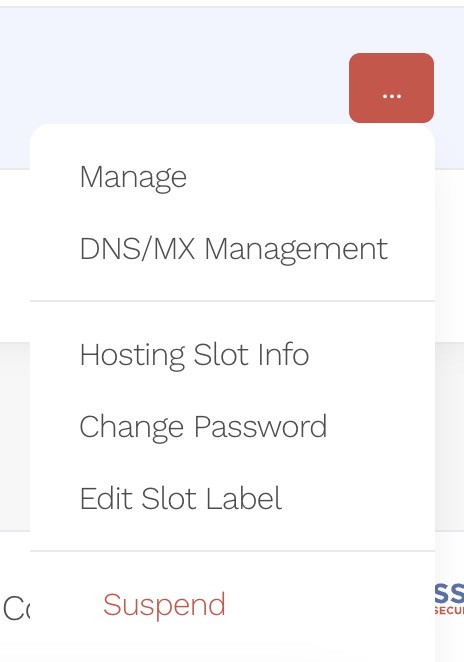 - Click the Actions menu next to the hosting slot you want to suspend.