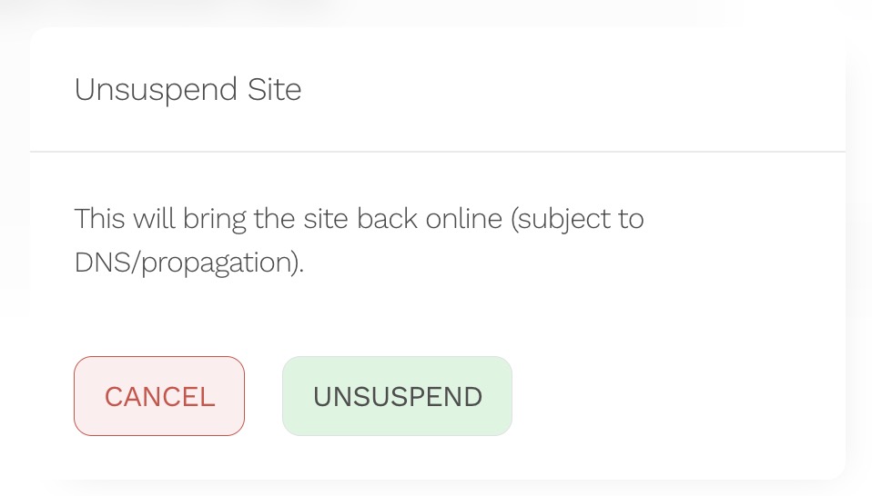 - Once unsuspended, the hosting slot usually comes back online immediately. However, in some cases, there may be a short delay of a few minutes due to DNS propagation.