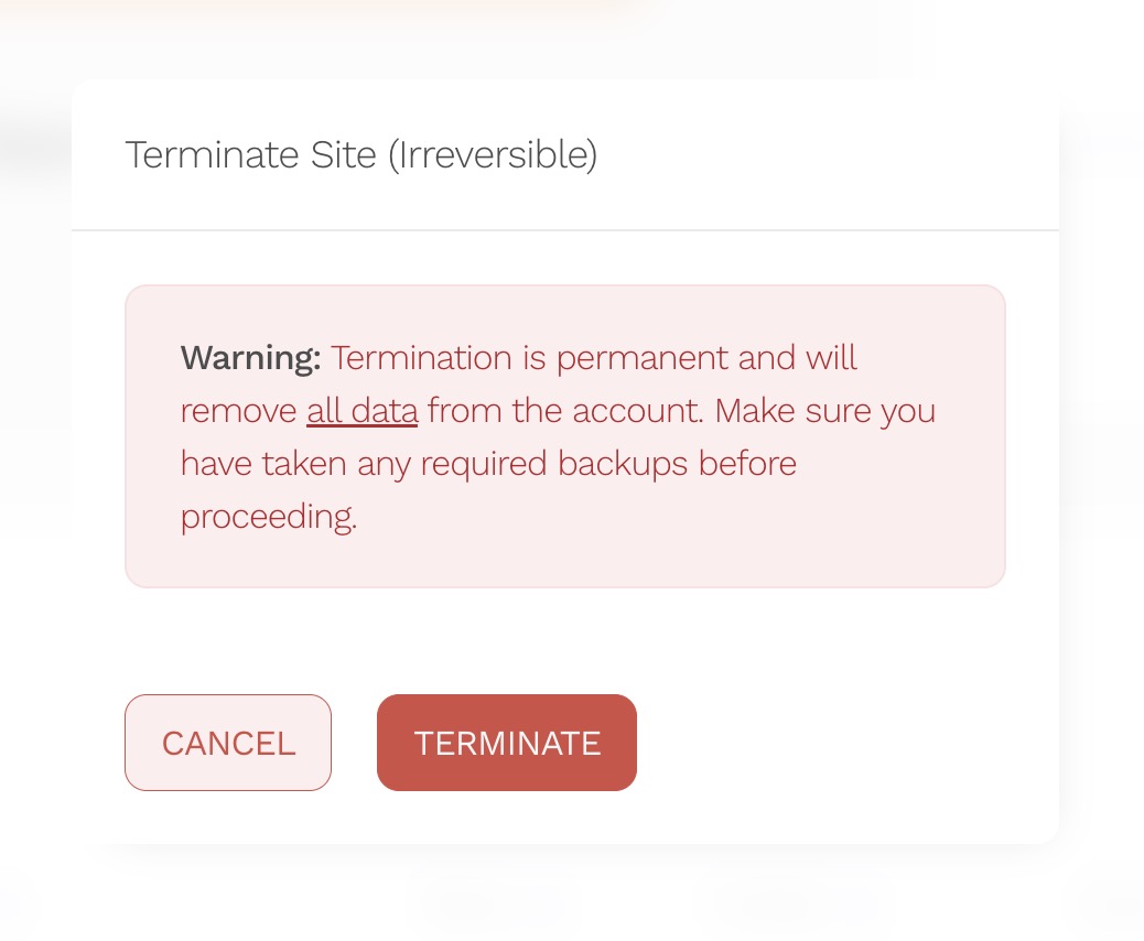 Once Termination is complete, the data cannot be recovered. Only use this option if you are absolutely certain.