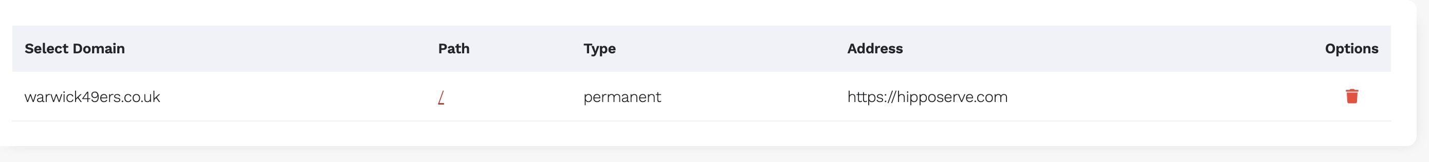 If you make a mistake or need to change a redirect, you must delete it using the trash icon and create a new one.