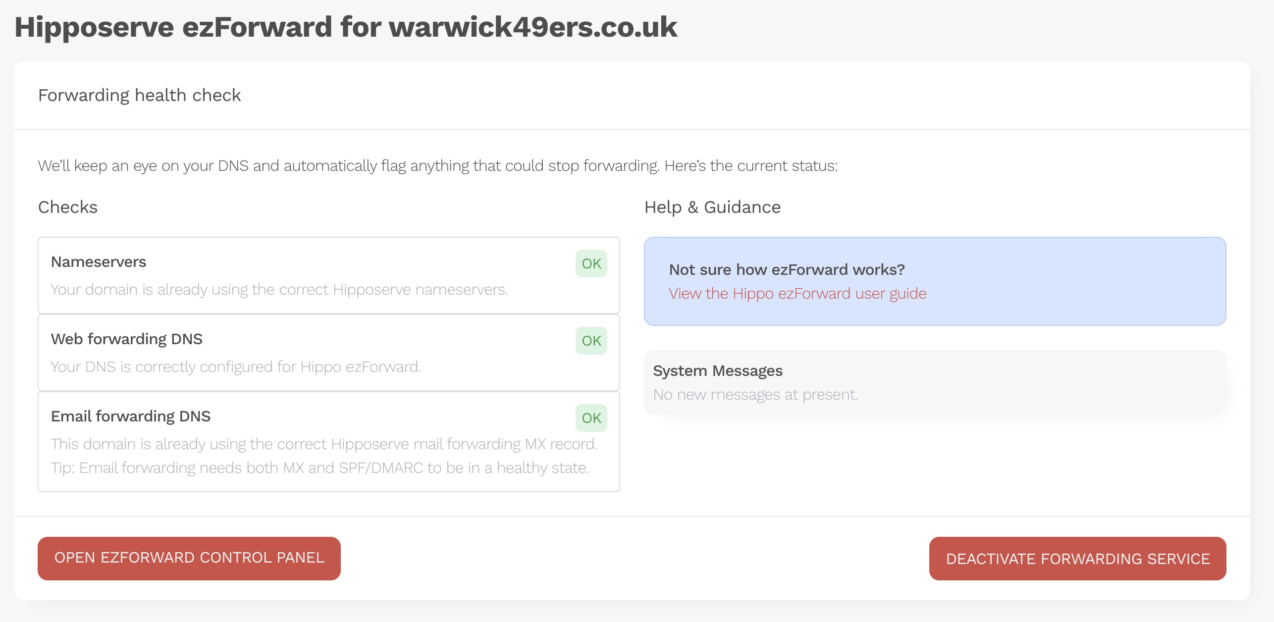 You will now be taken directly to the ezForward Management Area, where you can configure and manage all forwarding features for this domain.