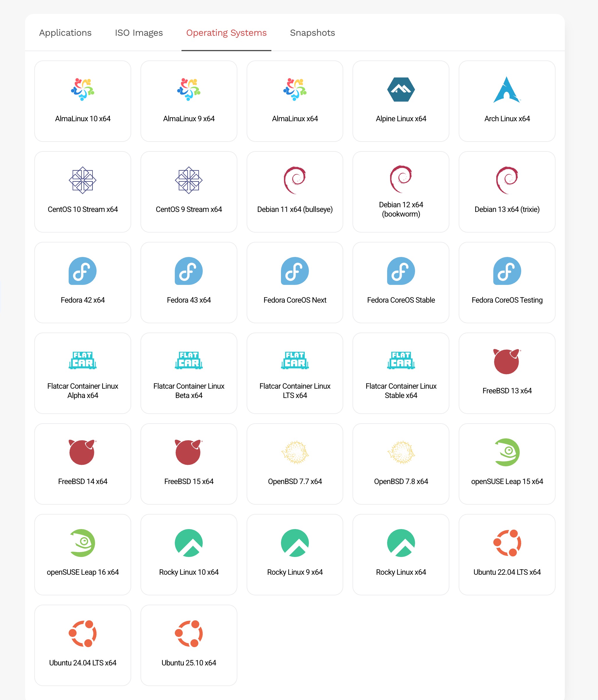 Your VPS instance is provisioned with a base operating system and is ready for immediate use. However, many users prefer to deploy their own operating system or application stack.